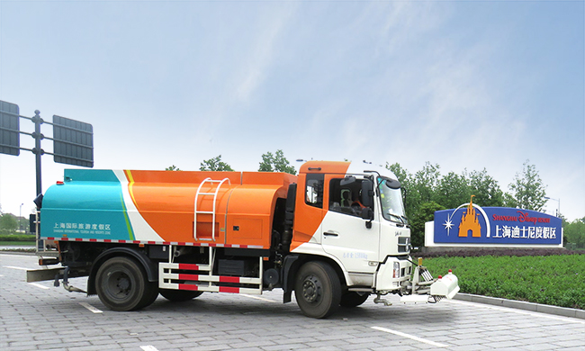 上海迪士尼樂(lè )園是中國大陸第一個(gè)、亞洲第三個(gè)、世界第六個(gè)迪士尼主題公園, 2016年6月16日開(kāi)園時(shí)將包括六大主題園區:米奇大街、奇想花園、探險島、寶藏灣、明日世界和夢(mèng)幻世界。為使園區及周邊輻射區域保持優(yōu)質(zhì)的環(huán)境衛生,讓游客感受到清新、潔凈、奇妙的游樂(lè )環(huán)境,“福龍馬”高端環(huán)衛裝備被上海迪士尼組合選用,近日完成交車(chē)開(kāi)始上崗服務(wù)。該組合環(huán)衛裝備包含了路面養護車(chē)、清洗車(chē)、洗掃車(chē)、餐廚垃圾車(chē)、壓縮式垃圾車(chē)等環(huán)衛清潔、垃圾收運設備,能有效提高環(huán)衛作業(yè)機械化水平,垃圾分類(lèi)清運將進(jìn)入“快車(chē)道”,大大減輕園區環(huán)境管理工作人員的勞動(dòng)強度。
