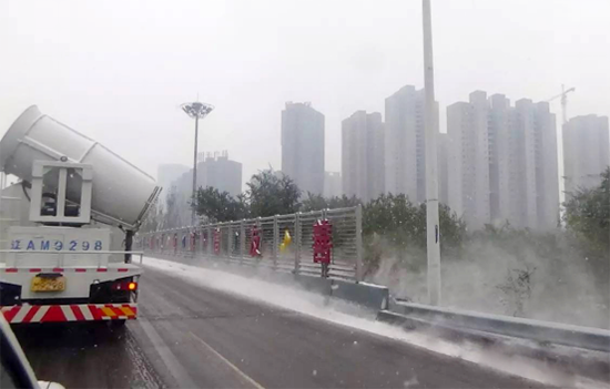 特制的多功能抑塵車(chē)進(jìn)行吹除邊道浮雪及雪沫吹雪作業(yè)