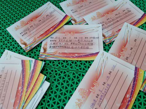回收孩子的心愿卡和夢(mèng)想卡并張貼在墻上