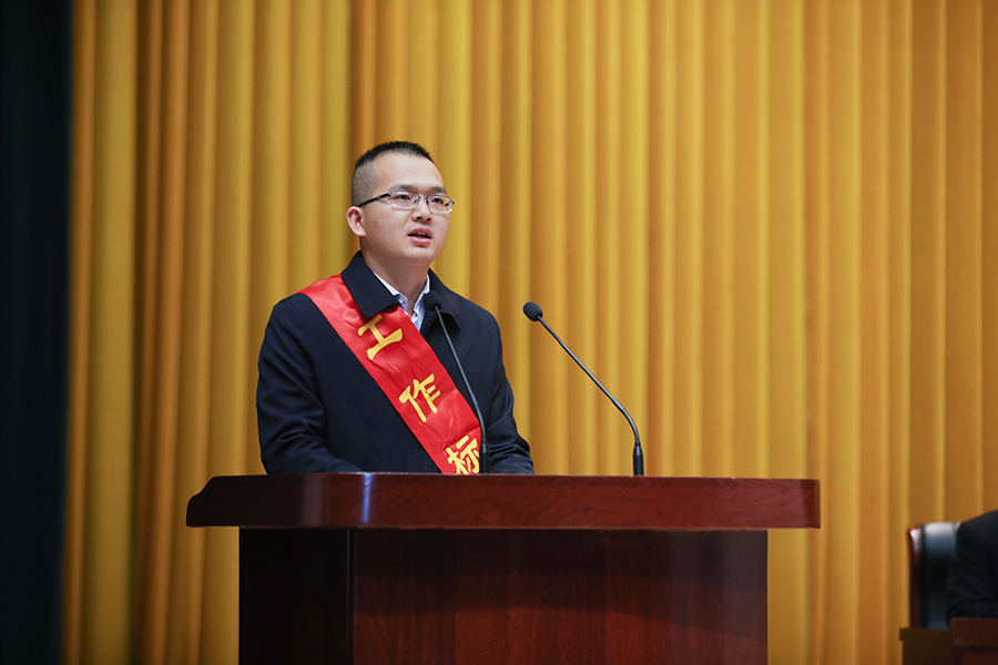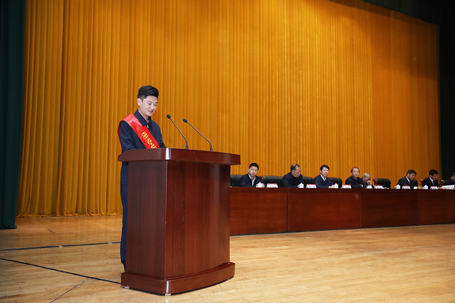 技能競賽獲獎員工代表胡秀金同志上臺發(fā)言