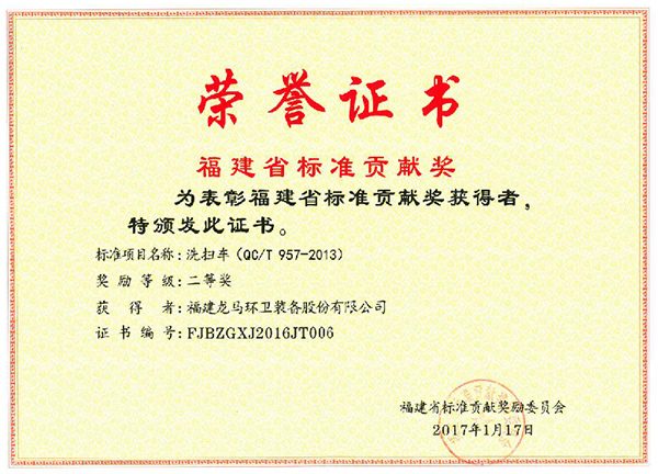 龍馬環(huán)衛榮獲2016年福建省標準貢獻獎二等獎