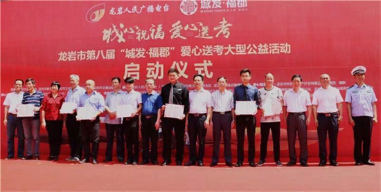 6月6日上午,由龍巖市委文明辦、市教育局、市文化廣電新聞出版局、市交通運輸局主辦,龍巖人民廣播電臺承辦,龍馬環(huán)衛協(xié)辦的2017年龍巖市第八屆愛(ài)心送考大型公益活動(dòng)啟動(dòng)儀式在龍巖金融中心前盛大舉行。