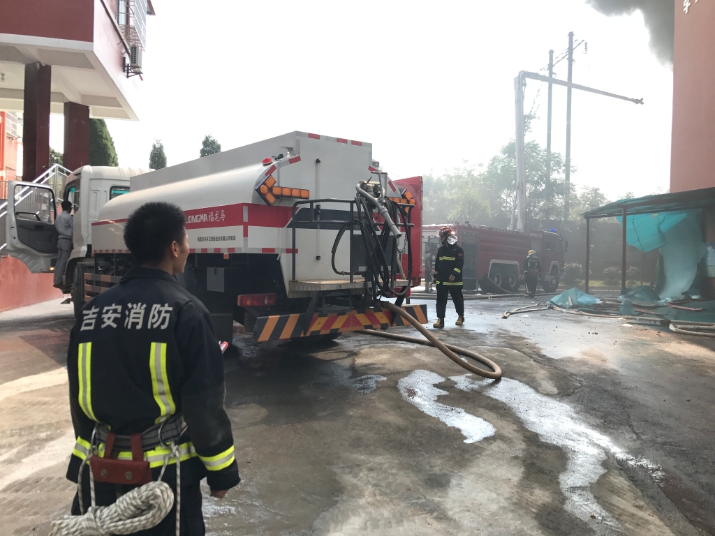 2017年9月19日早上,申浩小學(xué)附近的泡沫廠(chǎng)失火,由于地形影響,消防車(chē)供水困難。吉水龍馬環(huán)衛接到上級通知后,第一時(shí)間調配4輛正在清洗保潔的水車(chē)停止作業(yè),迅速趕往申浩小學(xué)附近泡沫廠(chǎng)現場(chǎng),全力協(xié)助消防中隊進(jìn)行滅火。