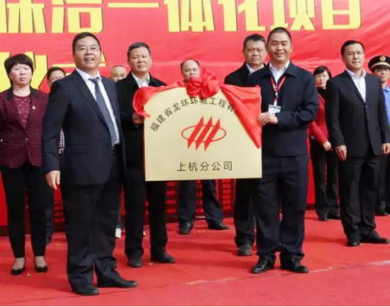 福建省龍環(huán)環(huán)境工程有限公司董事長(cháng)黃閩江為福建省龍環(huán)環(huán)境工程有限公司上杭分公司授牌