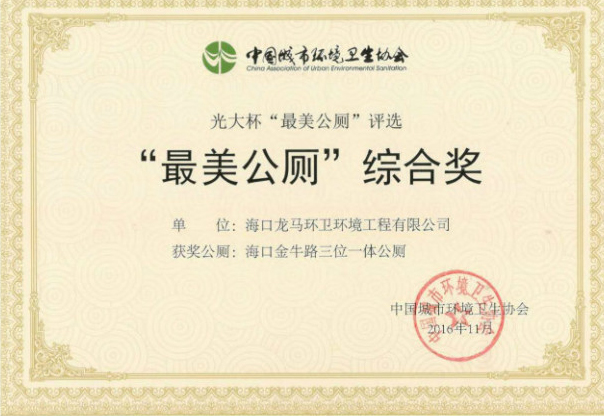創(chuàng )新無(wú)止境,在短短不到兩年的時(shí)間里,作為??谑兄鞒菂^的龍華區市容市貌發(fā)生了翻天覆地的變化,總經(jīng)理羅福海帶領(lǐng)他的團隊,全身心投入,不怕苦,不怕累,不講條件,尤其是在城市環(huán)境衛生綜合整治、環(huán)衛設施基礎建設等方面開(kāi)展了一系列卓有成效的工作,得到了海南省、??谑械扔嘘P(guān)領(lǐng)導的充分肯定和贊揚,在總經(jīng)理羅福海的帶領(lǐng)下,公司投入建設、改造了14座固定公廁、14座移動(dòng)公廁。其中位于金牛路集公廁、垃圾轉運站、群眾工作站于一身的“三位一體”公廁,被中國城市環(huán)境衛生協(xié)會(huì )評為"最美公廁"綜合獎,成為??凇半p創(chuàng )”環(huán)衛工作中的一大亮點(diǎn)。