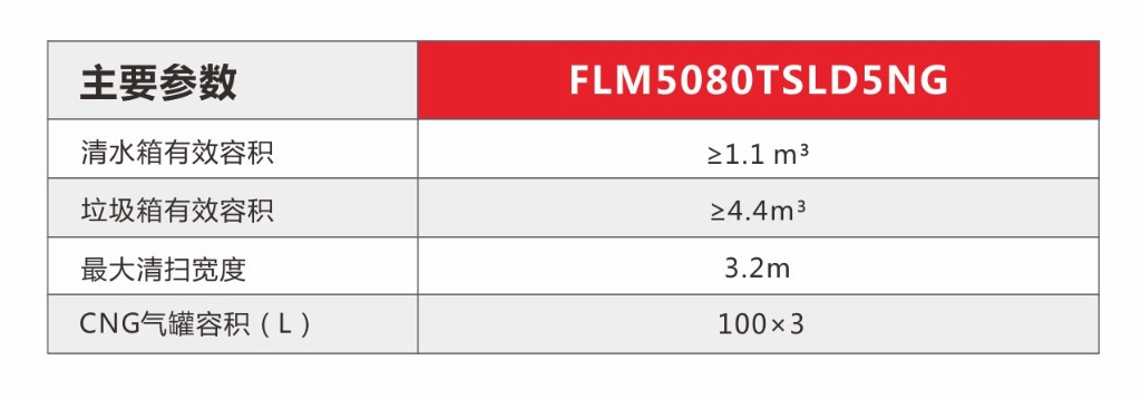 FLM5080TSLD5NG天然氣掃路車(chē)底盤(pán)發(fā)動(dòng)機及副發(fā)動(dòng)機均使用CNG(壓縮天然氣)燃料,排放達到國V標準。該車(chē)型適用于公路、城市道路、高架橋、廣場(chǎng)、機場(chǎng)、碼頭等混凝土路面和瀝青路面的機械化清掃保潔作業(yè)。