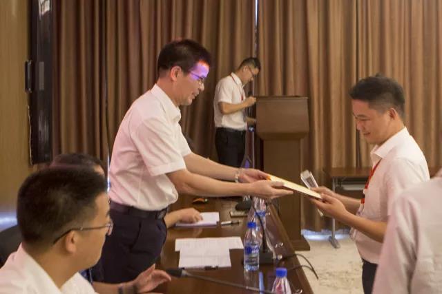 集團總裁兼學(xué)院榮譽(yù)院長(cháng)張桂潮為優(yōu)秀講師羅添津頒發(fā)榮譽(yù)證書(shū)及獎杯,望為公司培養出更多綜合型、高素質(zhì)、全方位人才。