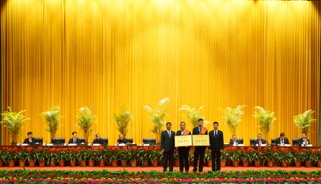 董事長(cháng)張桂豐、總裁張桂潮為先進(jìn)集體頒獎。