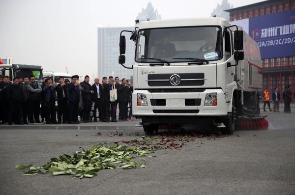 在路演環(huán)節中,我司隆重推出了集樹(shù)葉收集與破碎功能于一體的“福龍馬”牌FLM5181TXSDF5L破碎樹(shù)葉洗掃車(chē),在突破原有技術(shù)的基礎上,完好保留了洗掃車(chē)的各種道路清潔功能。該車(chē)采用多項專(zhuān)利技術(shù),解決了困擾行業(yè)多年的樹(shù)葉清掃與路面洗掃同時(shí)兼顧的難題。車(chē)輛可實(shí)時(shí)針對路面不同落葉量及葉片大小,提供多種作業(yè)模式,操作便捷,效果顯著(zhù),同時(shí)還能兼顧路面的塵土、砂石,提供多種復雜污染工況下清掃保潔的最優(yōu)解決方案。
