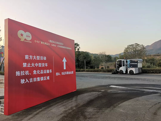 為保證現場(chǎng)及周邊環(huán)境的干凈整潔,龍馬環(huán)衛快速響應,派出最新無(wú)人駕駛小型掃路機為此次活動(dòng)保駕護航。