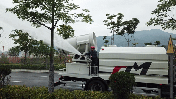 采用環(huán)保除塵風(fēng)送式噴霧機,結構緊湊,射程遠,霧粒細小,覆蓋面積大,可手動(dòng)或遙控操縱。通過(guò)攝像頭在駕駛室內即可進(jìn)行所有的作業(yè)。