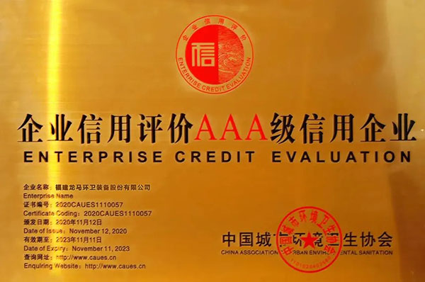 龍馬環(huán)衛憑借今年在環(huán)衛領(lǐng)域上的突出表現,榮獲“企業(yè)信用評價(jià)AAA級信用企業(yè)”、“特殊貢獻企業(yè)獎”,受到業(yè)內同仁的一致肯定。