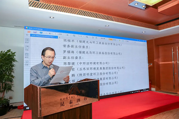 大會(huì )現場(chǎng),中環(huán)協(xié)副會(huì )長(cháng)兼秘書(shū)長(cháng)劉晶昊宣讀了“關(guān)于同意環(huán)衛作業(yè)運營(yíng)專(zhuān)業(yè)委員會(huì )機構調整的函”。