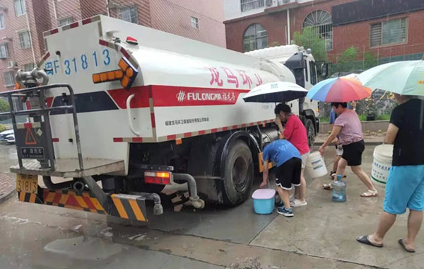 多地出現水電中斷情況,超市物資供應不足,龍馬環(huán)衛出動(dòng)福龍馬牌灑水車(chē),來(lái)到生活區附近,作為應急接水點(diǎn),有效緩解居民用水的燃眉之急。
