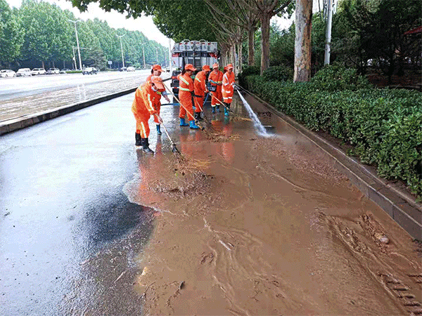 龍馬環(huán)衛在多地開(kāi)展清淤沖洗行動(dòng),保障排水暢通。公司調度機械車(chē)輛,采用人機結合的方式開(kāi)展清淤和道路沖洗工作,對嚴重積淤路段加大沖洗頻次,保障災后居民的生活環(huán)境。