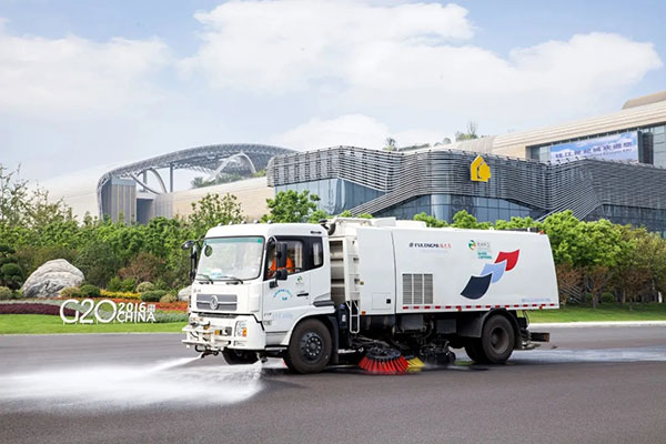 2016年,杭州G20峰會(huì ),“福龍馬”牌洗掃車(chē)在場(chǎng)館周邊進(jìn)行道路保潔服務(wù)工作