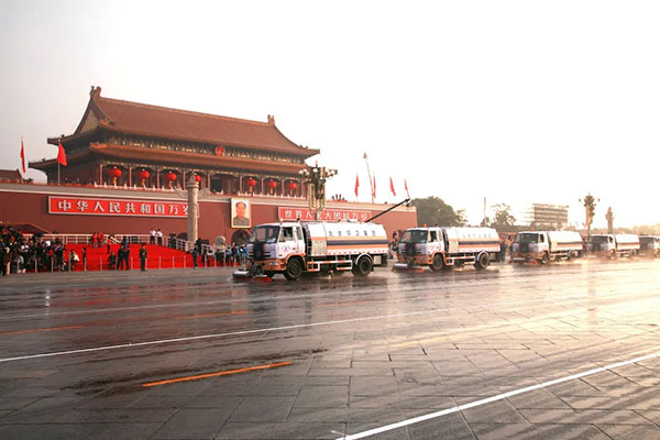 2009年,國慶60周年閱兵,“福龍馬”牌環(huán)衛裝備為閱兵場(chǎng)地做清潔保障服務(wù)