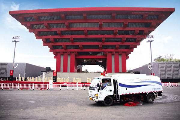 2010年5月,上海世博會(huì ),“福龍馬”牌清掃車(chē)在中國館前作業(yè)