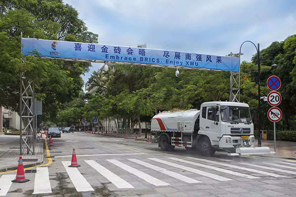 2017年,廈門(mén)金磚會(huì )議,“福龍馬”牌高壓清洗車(chē)做道路保潔保障服務(wù)工作