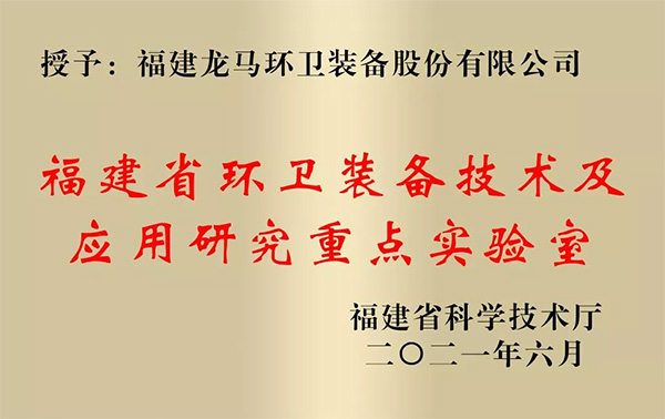 近日,我司成立建設的實(shí)驗室被福建省科學(xué)技術(shù)廳正式授牌成為“福建省環(huán)衛裝備技術(shù)及應用研究重點(diǎn)實(shí)驗室”,這是環(huán)衛行業(yè)內首家省級重點(diǎn)實(shí)驗室。