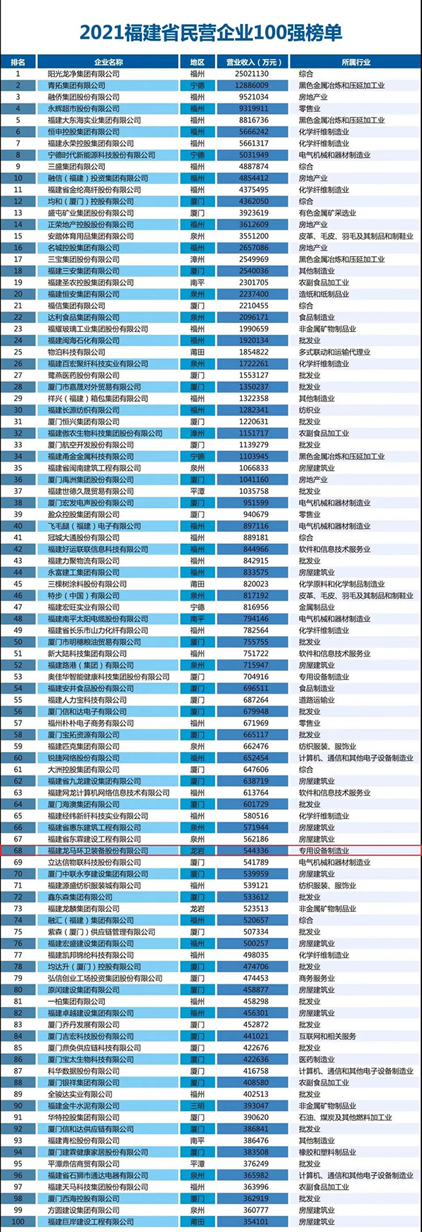 10月15日,由福建省工商聯(lián)和三明市人民政府聯(lián)合主辦的2021福建省民營(yíng)企業(yè)100強發(fā)布會(huì )暨三明市民營(yíng)企業(yè)發(fā)展大會(huì )在三明召開(kāi)。省政協(xié)副主席、省工商聯(lián)主席王光遠出席并致辭,省委統戰部副部長(cháng)、省工商聯(lián)黨組書(shū)記李家榮,三明市委書(shū)記余紅勝、市長(cháng)李春等出席大會(huì )。