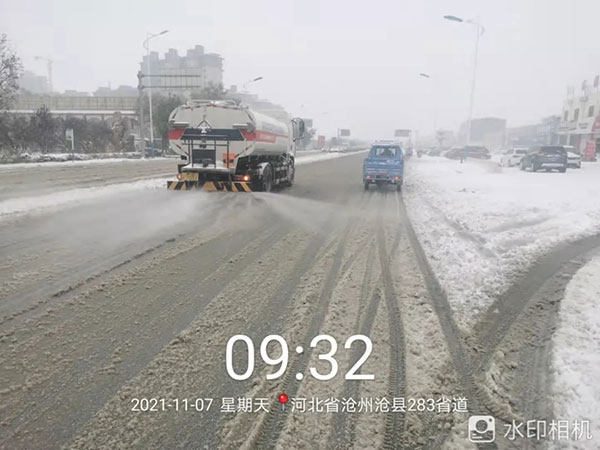 為盡快除雪,泊頭龍馬按照“以雪為令、邊下邊清”的原則,機械清掃隊立即上路,對城區主干道進(jìn)行拋灑融雪劑,人停機不停,保證路面行駛安全。