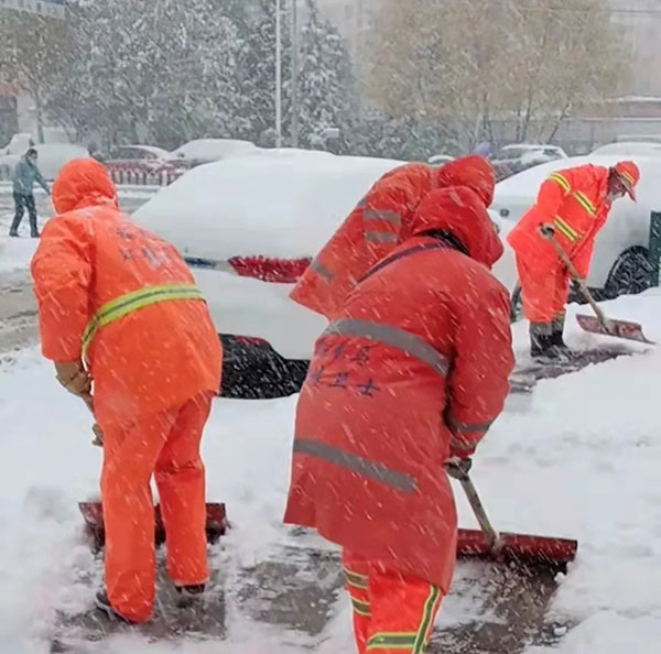未雨綢繆,在接到氣象部門(mén)降雪預警后,北方大區各項目公司迅速成立成立項目除雪保暢工作小組,明確職責,工作落實(shí)到位,查漏補缺,及時(shí)備足備齊除雪裝備和清掃清運車(chē)輛,以及鐵锨,掃帚、融雪劑、工業(yè)鹽等除雪工具,切實(shí)做到有備無(wú)患。
