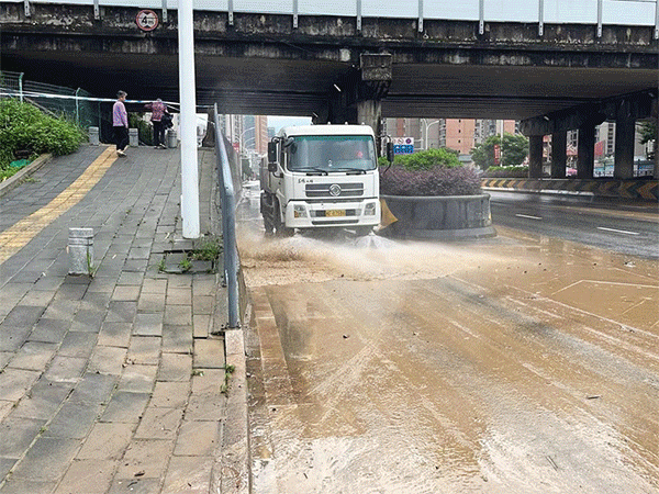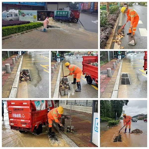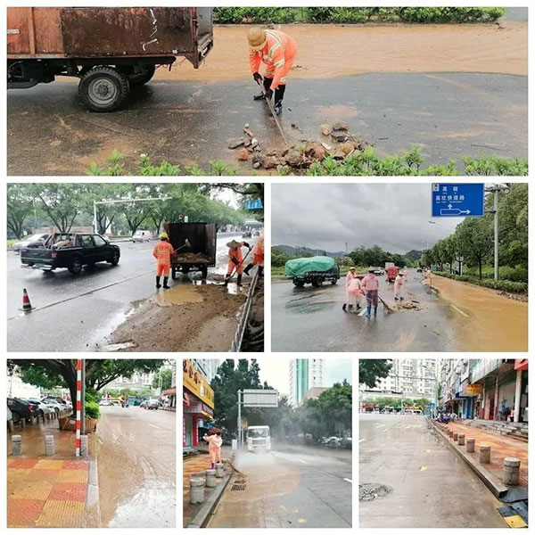 在龍巖市城市管理局、市環(huán)衛中心的指導下,龍環(huán)人以“雨”為令,聞“汛”而動(dòng),迅速啟動(dòng)防汛應急預案,組織防汛防澇,趕排積水、清理路面垃圾、淤泥,全力恢復雨后市容環(huán)境交通秩序。
