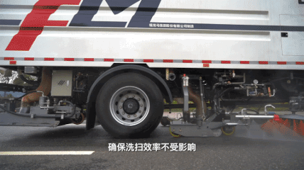 該車(chē)采用“中置兩盤(pán)掃+中置V型噴水架+中置雙吸口寬吸嘴結構+后置深度保潔寬吸嘴+左、右高壓側噴桿”, 左右噴桿同時(shí)擺出時(shí),最大洗掃寬度可達4.1m。