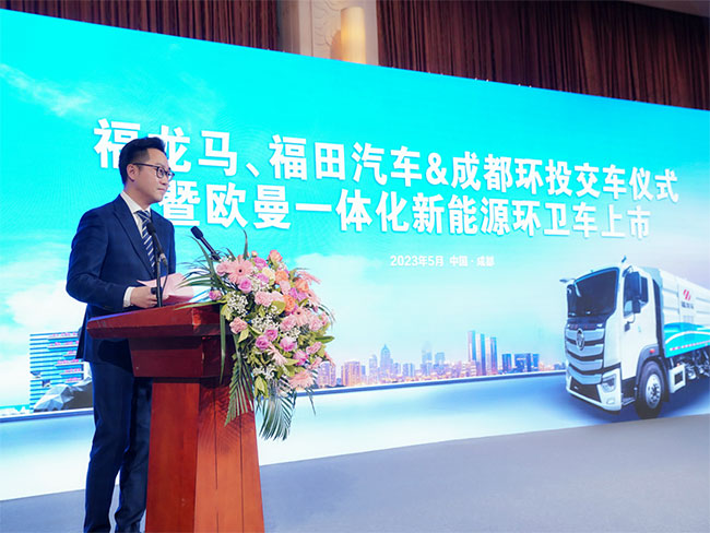 儀式現場(chǎng),福龍馬集團高級副總裁查文鑫在致辭時(shí)表示,作為一家為客戶(hù)提供環(huán)境衛生整體解決方案的企業(yè),福龍馬集團一直以來(lái)始終努力開(kāi)發(fā)推廣新能源環(huán)衛車(chē)輛,減少碳排放和能源消耗,致力于提高路面保潔效率和質(zhì)量,改善城市衛生和美觀(guān)。福龍馬集團與福田汽車(chē)保持著(zhù)長(cháng)期的戰略合作,并一直與成都環(huán)境投資集團有著(zhù)深遠的合作伙伴關(guān)系。